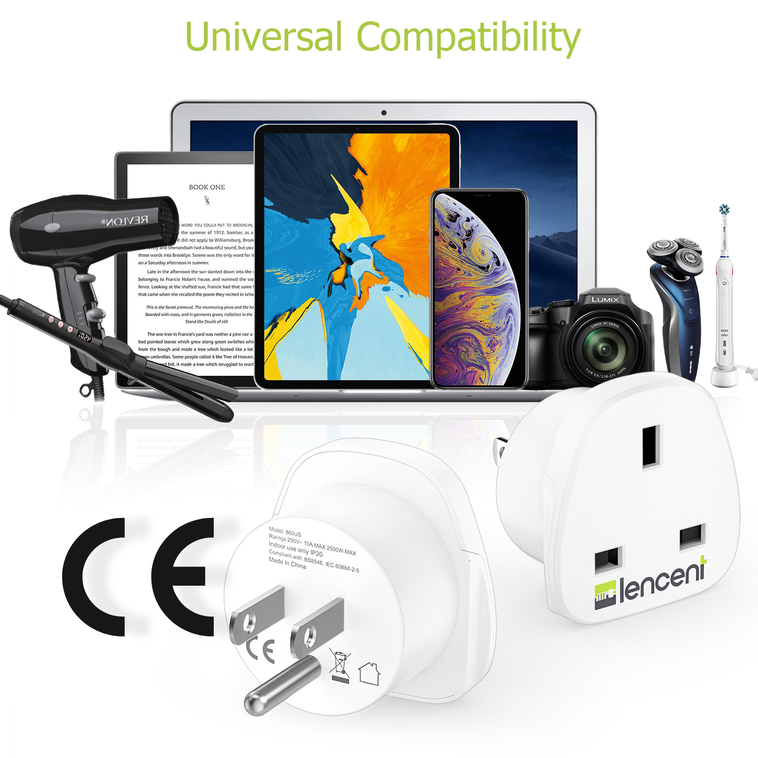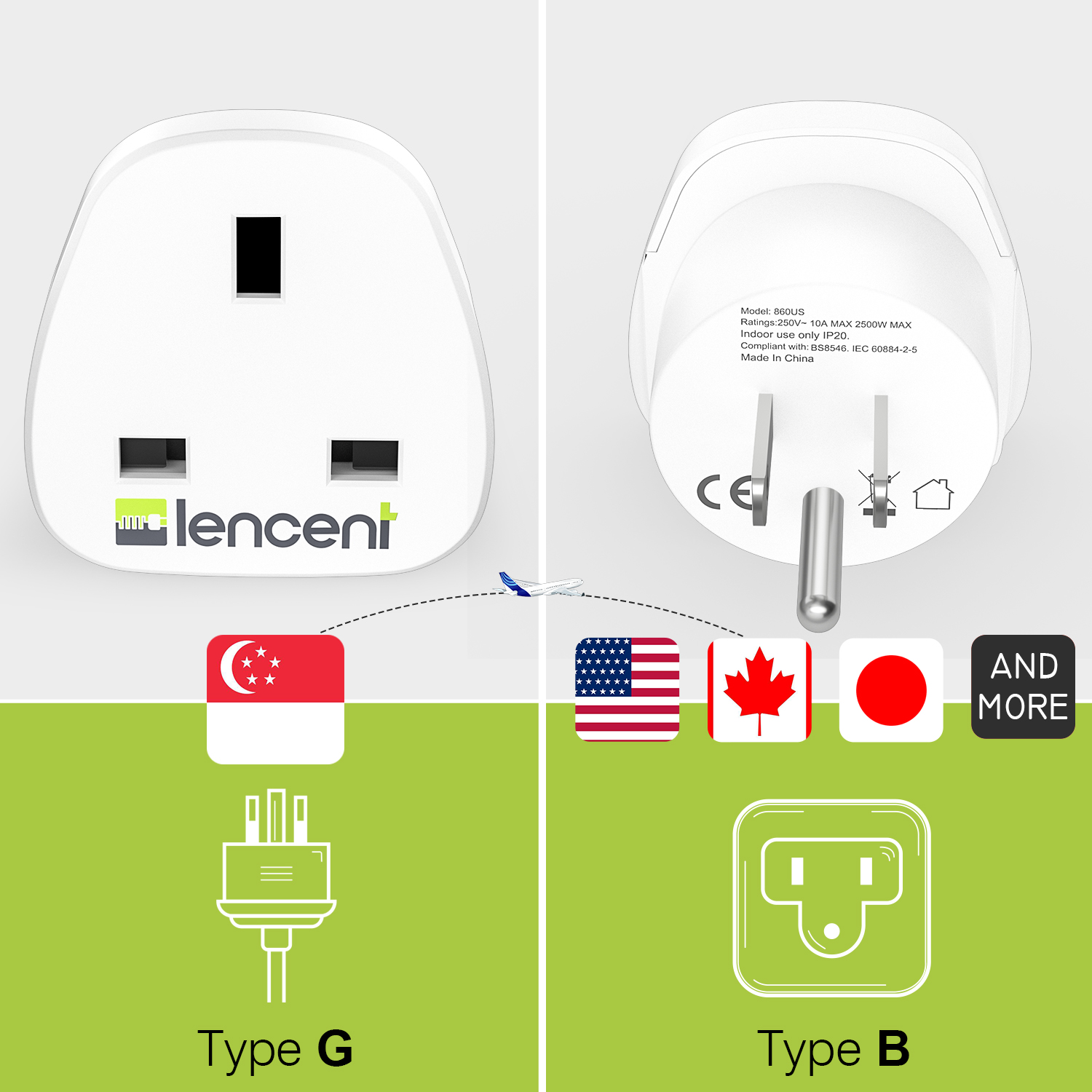 LENCENT 2 X Singapore to USA America Plug Adapter, Grounded American Travel Adapter for United States Mexico Canada Thailand and More (Type B)Charger Converters