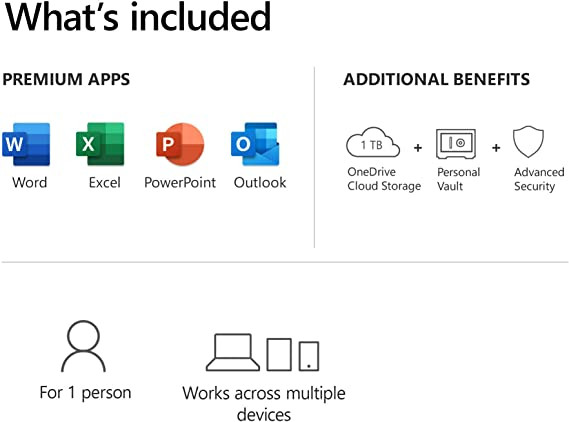 1 TB OneDrive cloud storage per person to back up files and photos
