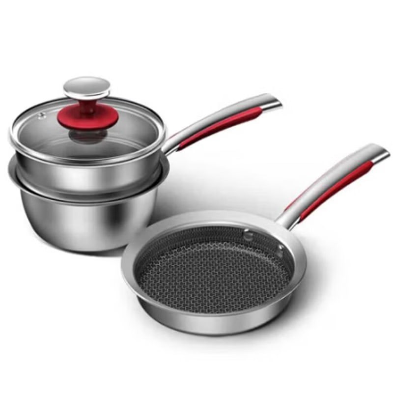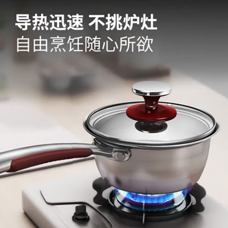 Stainless steel baby milk pan, flat-bottomed non-stick pan, baby food set (1 piece)