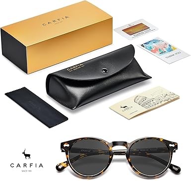 CARFIA Round Acetate Polarized Sunglasses for Women with Small Face and UV Protection (with Leather Case) CA5288