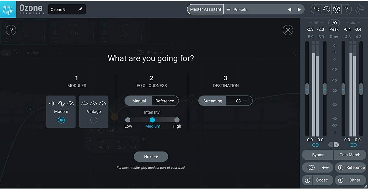 • Master Assistant uses your audio's sonic profile to get you to a logical starting point