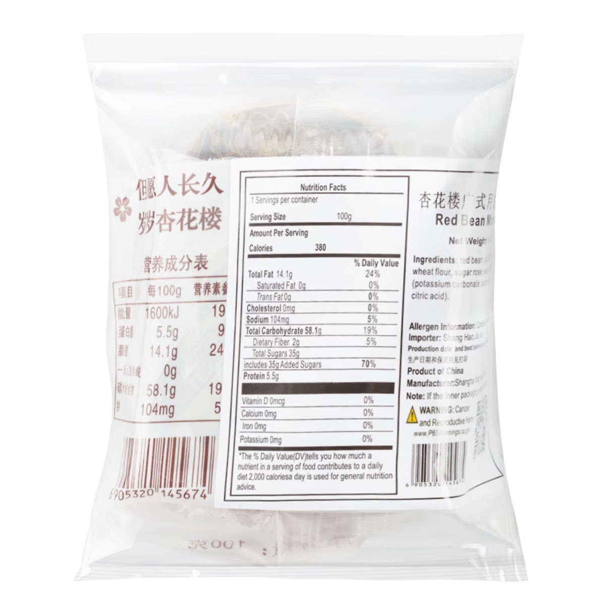 Weee Exclusive Xinghualou Rose Red Bean Paste Mooncake 100g
