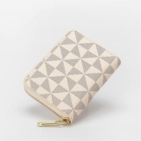Veki Women's Credit Card Holder, RFID Leather Zip Wallet, Small Zip Card Holder for Unisex, White, Simple